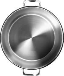 De speciale bodem slaat warmte op en verdeelt deze gelijkmatig, kookt sneller en zuiniger – perfect voor bouillons en slow cooking.