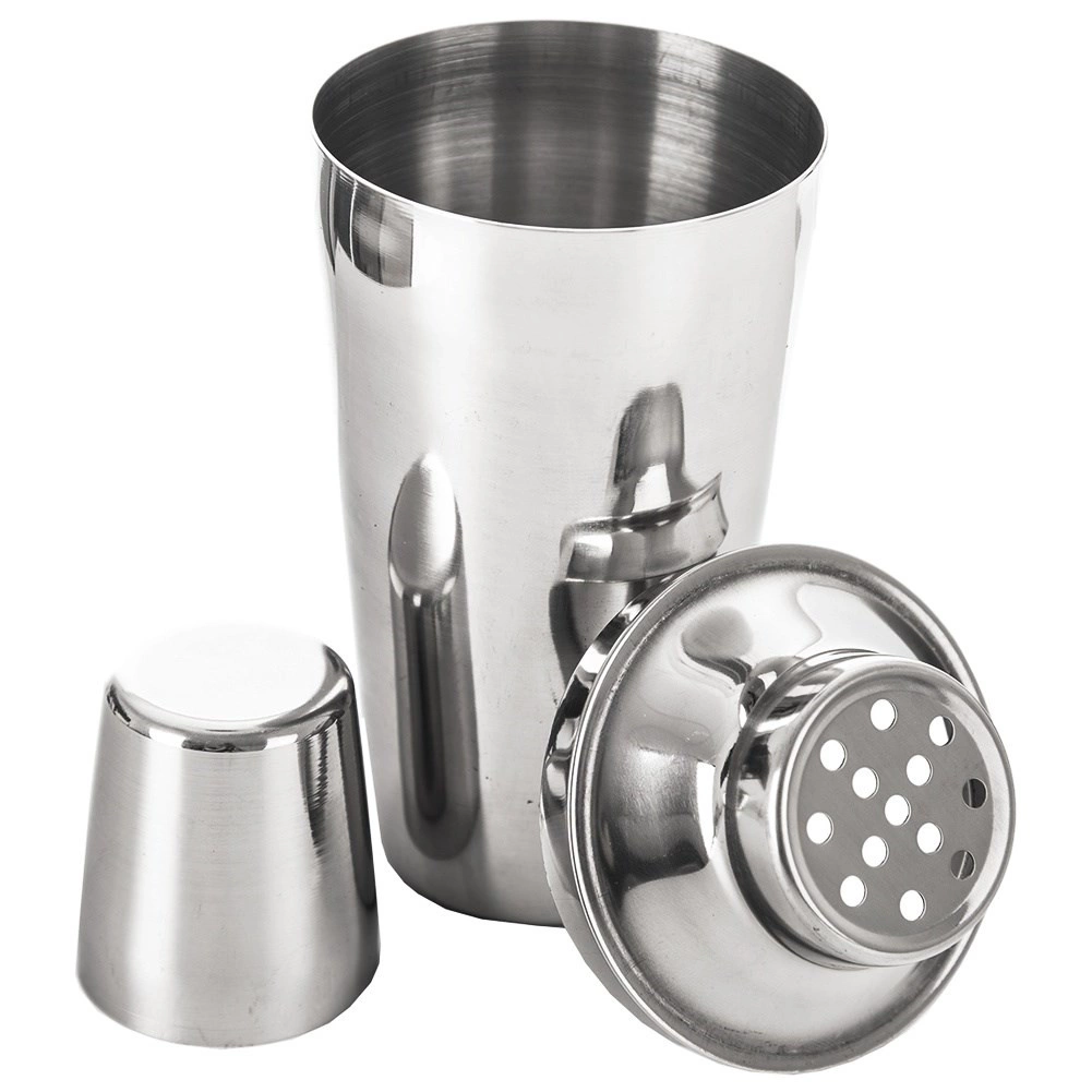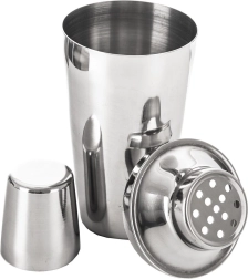 Stijlvolle roestvrijstalen shaker met een inhoud van 520 ml voor zowel de thuisbar als de professionele bar. Dankzij de driedelige constructie met ingebouwd zeefje en maatdop kun je snel cocktails bereiden en schoon inschenken. Duurzaam roestvrij staal, eenvoudig onderhoud en een elegante, glanzende afwerking maken van deze shaker ook een origineel cadeau.