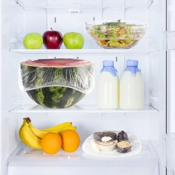 Rek ze eenvoudig over kommen, borden, flessen of een aangesneden stuk fruit. Ze creëren een dichte afsluiting die de verspreiding van geurtjes en uitdroging beperkt.