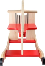 Schommelen bevordert op natuurlijke wijze de grove motoriek, versterkt de rompstabiliteit en ondersteunt coördinatie en evenwichtsgevoel. Het elegante natuurlijke hout met rode accenten past perfect in de kinderkamer. Het product vereist eenvoudige montage – een geïllustreerde handleiding is inbegrepen.