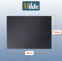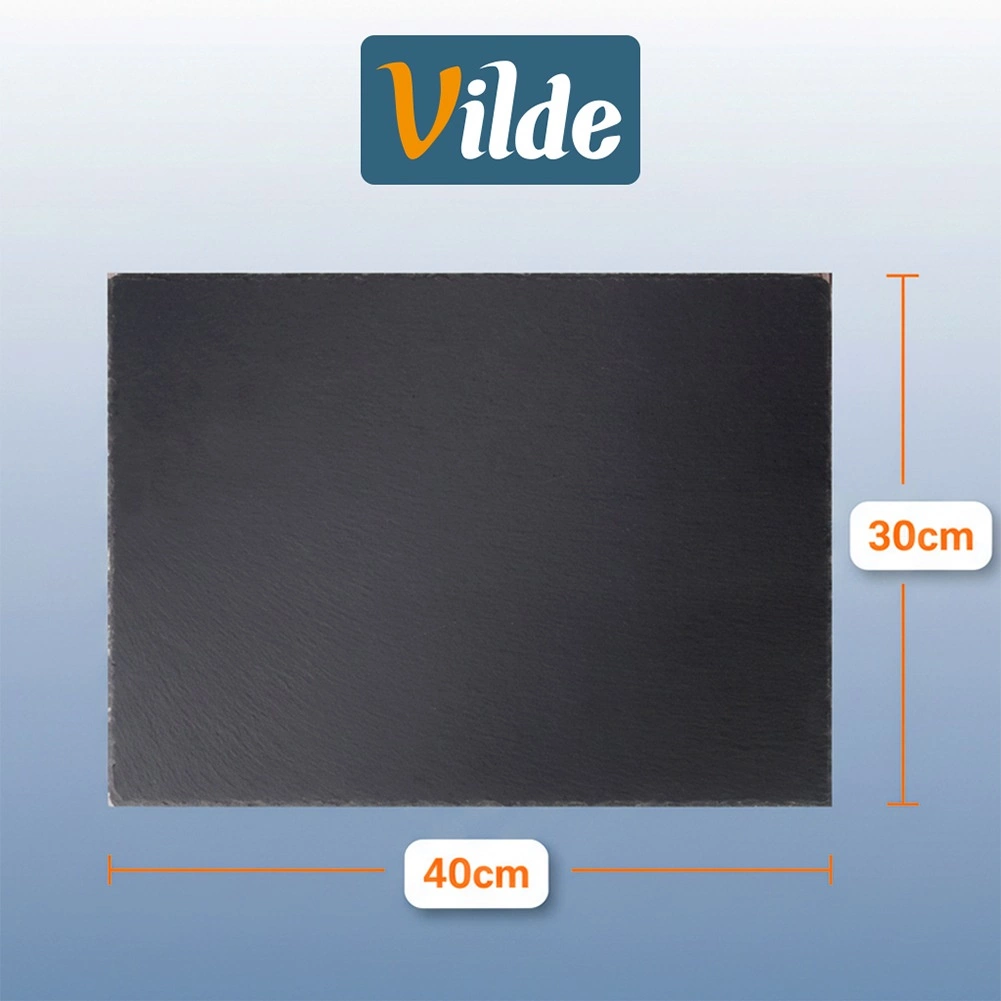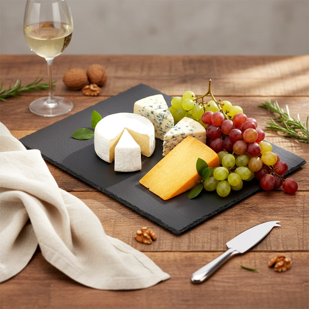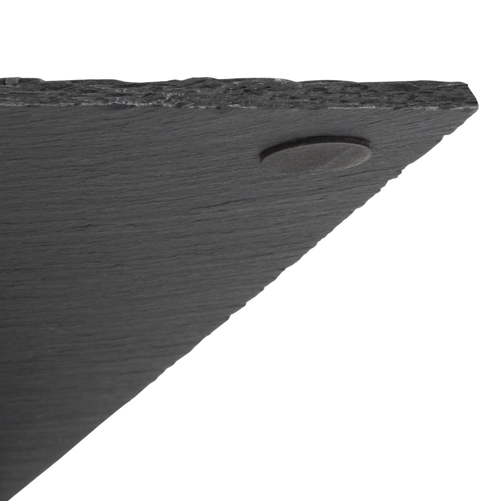 De plaat is gemaakt van natuurlijke leisteen, die uitblinkt in duurzaamheid en warmtecapaciteit – je kunt hem voor gebruik koelen voor koude gerechten of licht voorverwarmen voor warme delicatessen. De onderzijde is voorzien van antislip voetjes die het tafelblad beschermen tegen krassen en stabiliteit bieden bij snijden en serveren.