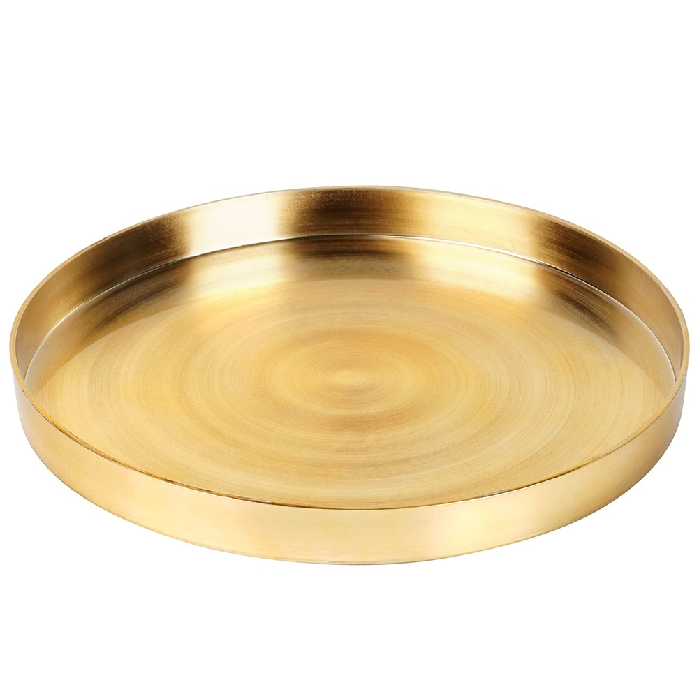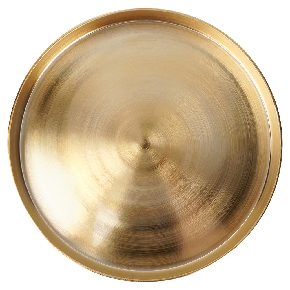 Elegante ronde schaal met een diameter van 32 cm met een moderne gouden afwerking en een verhoogde rand, ideaal voor het arrangeren van kaarsen, decoraties of sieraden. De stabiele constructie beschermt oppervlakken tegen was en helpt alles netjes op zijn plaats te houden.