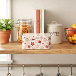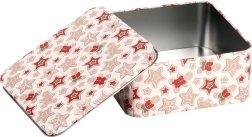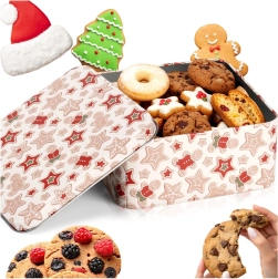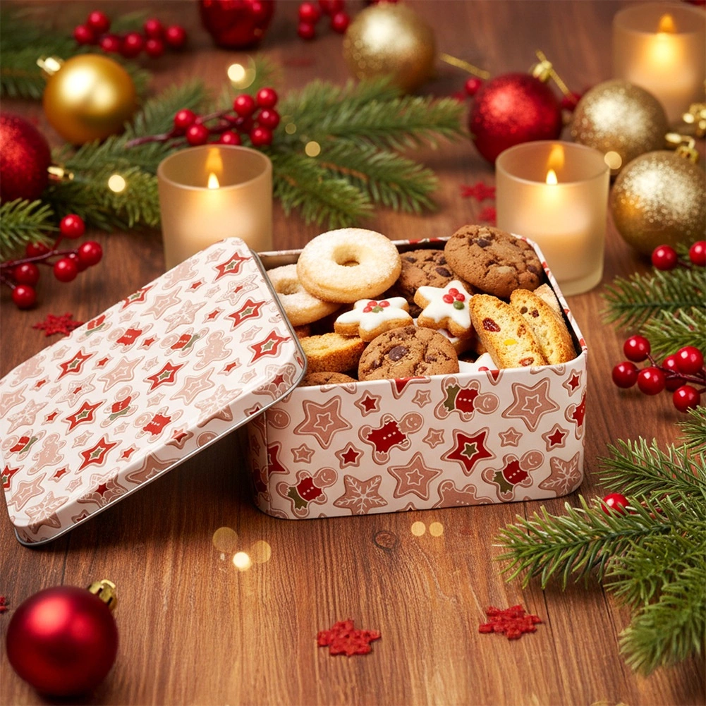 Deze vierkante metalen trommel met een subtiel kerstpatroon van peperkoekjes, sterretjes en winterse motieven is perfect voor dagelijks en seizoensgebonden gebruik. Dankzij het stevige deksel blijven lekkernijen langer vers en beschermd.