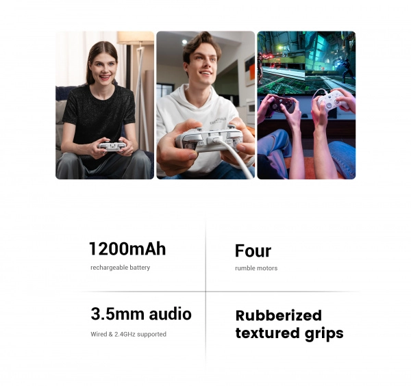 - Drievoudige verbinding: kabel (XBOX Series X|S, XBOX One), 2.4G (PC/Steam), Bluetooth (Android, iOS, Nintendo Switch)