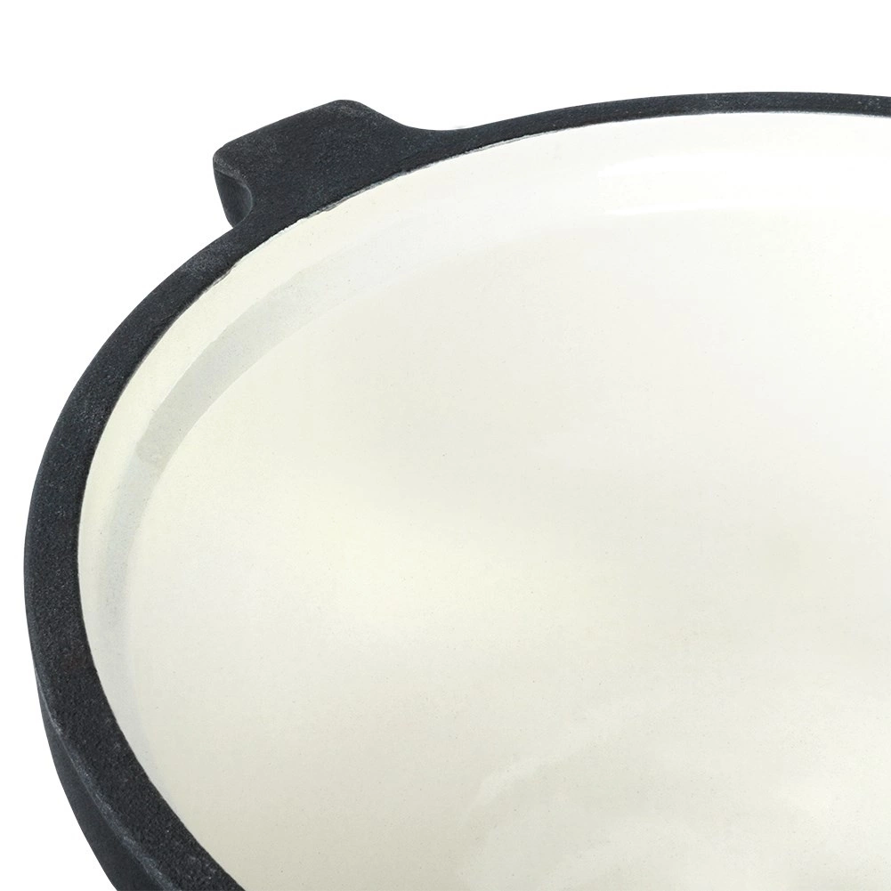 De beige geëmailleerde laag is niet-reactief, duurzaam en vergemakkelijkt zowel onderhoud als serveren zonder aanbakken.
