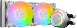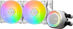 De gesloten lus met een duurzame driefasige pomp minimaliseert trillingen en geluid, terwijl gescheiden interne stroming in de radiator helpt warmte sneller af te voeren. Twee 120mm ARGB-ventilatoren leveren sterke luchtstroom en kunnen eenvoudig worden afgestemd op je build dankzij bediening via MSI Center.