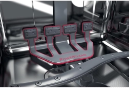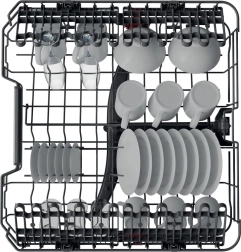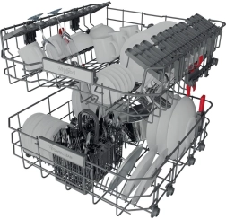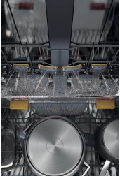 Zowel de boven- als onderkorf hebben neerklapbare steunen en hoogteverstelling. Zo plaatst u eenvoudig hoge glazen, bakplaten en volumineuze pannen zonder in te leveren op capaciteit.