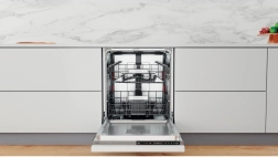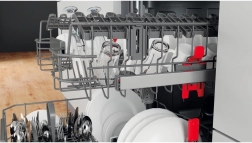 Slimme functies zoals verstelbare bovenkorven, neerklapbare steunen en een afzonderlijke besteklade of -mand maken het organiseren van de binnenruimte eenvoudig. Intuïtieve touchbediening aan de deurkant en duidelijke indicatoren vereenvoudigen de keuze van programma’s en optionele functies, inclusief zuinige modi.
