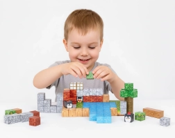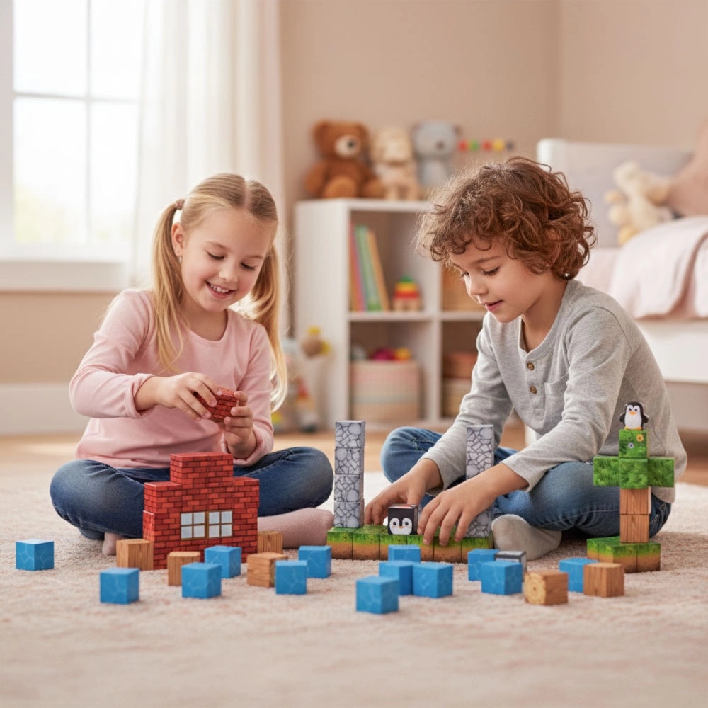 Deze set kleurrijke magnetische blokken laat kinderen torens, huisjes, bruggen en complete voxelwerelden bouwen. Dankzij de ingebouwde magneten klikken de onderdelen snel en zeker aan alle kanten vast – zonder frustratie en met direct succes. Blokken met prints van gras, hout, steen en water ondersteunen creatief spel en het maken van thematische scènes.