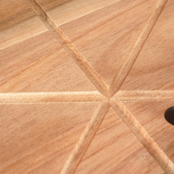 Deze elegante pizzaplank van acaciahout is ontworpen voor nauwkeurig portioneren en fraai serveren. Eén zijde heeft gefreesde geleidingsgroeven voor eenvoudig snijden in 6 gelijkmatige stukken, de andere zijde is glad en ideaal voor het serveren van kaas, vleeswaren of brood. De set bevat een scherpe roestvrijstalen snijder met houten handvat voor een schone, soepele snede.