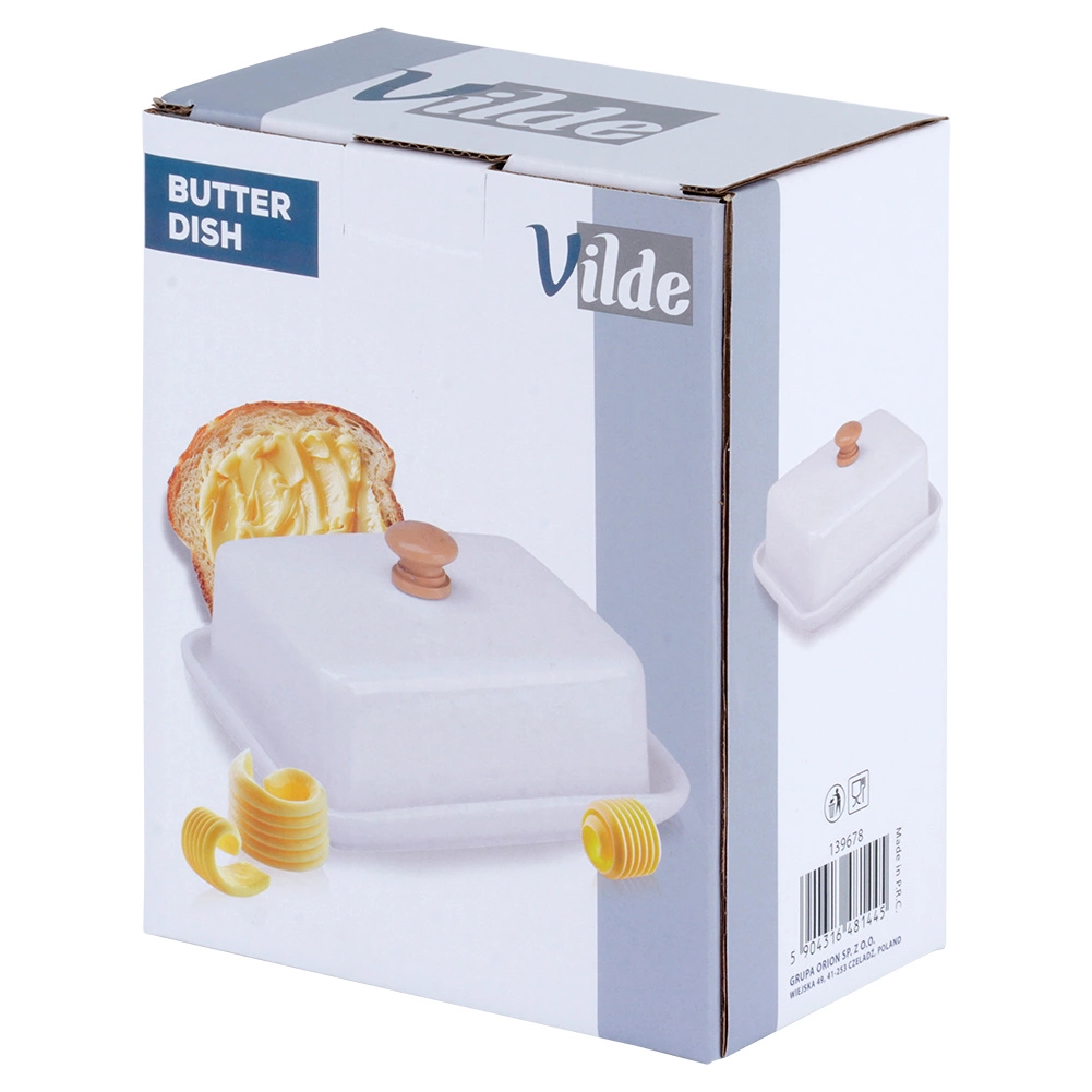 Het praktische deksel beschermt de boter tegen uitdrogen en geuren, terwijl de compacte vorm geschikt is voor zowel de koelkast als de tafel.