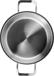 De roestvrijstalen pan ANETT is een betrouwbare hulp in elke keuken. De robuuste wanden en meerlaagse bodem slaan warmte uitstekend op en verdelen die gelijkmatig, waardoor u sneller en zuiniger kookt – met minder vet en zonder onnodig verlies van vitaminen en mineralen. Het matte oppervlak met een elegante glanzende ring geeft de pan een moderne uitstraling en is gemakkelijk te onderhouden.