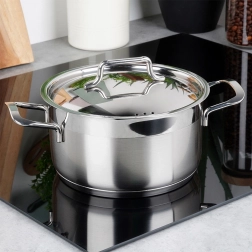 Inclusief een precies passend stalen deksel met ontluchtingsgaten voor gecontroleerde stoomafvoer. Comfortabele zijgrepen maken hanteren eenvoudig, of u nu soepen en sauzen kookt of groente en vlees stooft. De pan is geschikt voor gas, elektrisch, keramisch en inductie en kan in de vaatwasser worden gereinigd.
