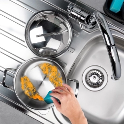 De meerlaagse akuthermische bodem slaat warmte snel op en verspreidt deze gelijkmatig over het hele oppervlak. U kookt sneller, met minder energieverbruik en zonder aanbranden.
