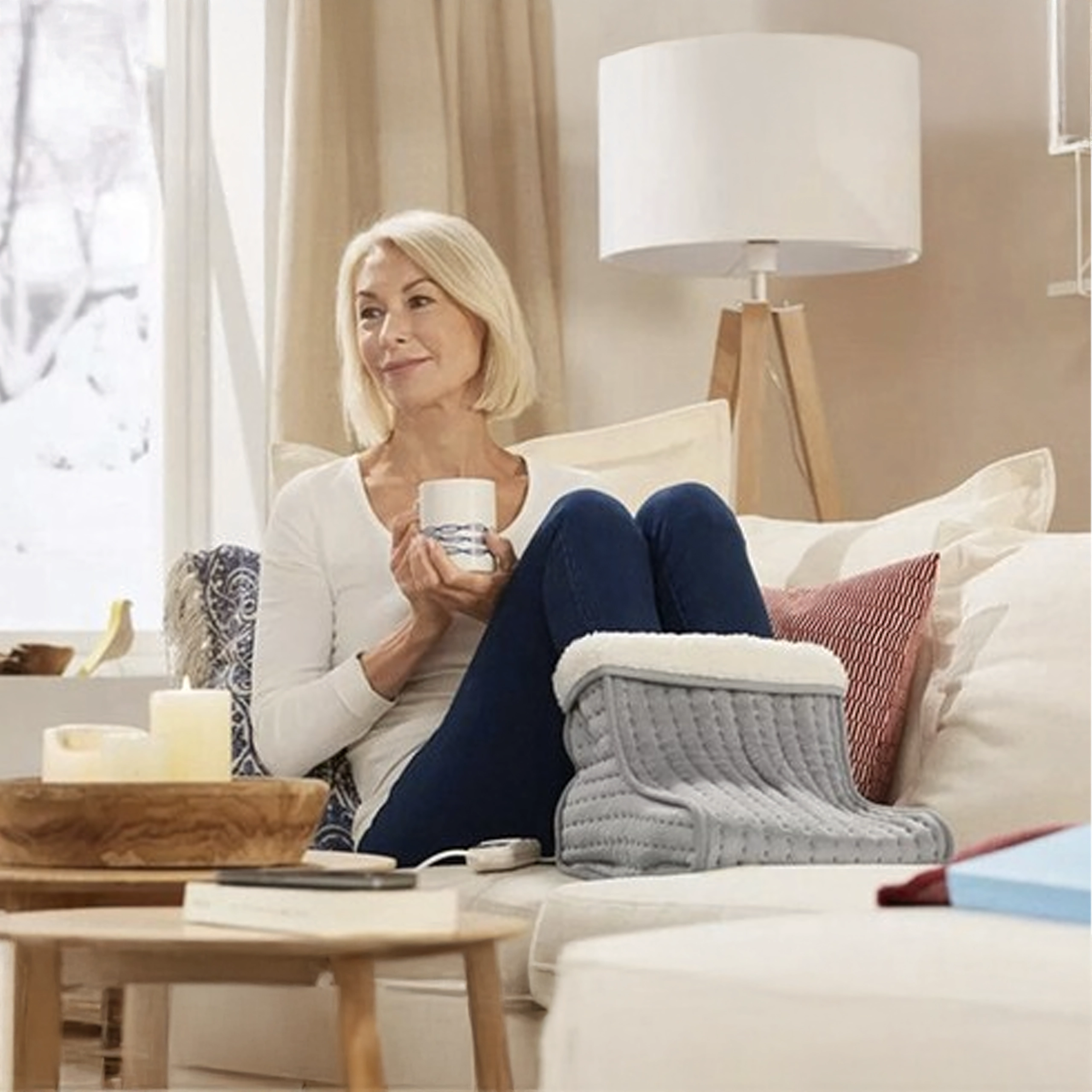De elektrische voetverwarmer is ontworpen voor maximaal comfort tijdens ontspannen voor de tv, aan je bureau of op de bank. De zachte pluchen binnenkant met aangename voering verspreidt de warmte gelijkmatig en helpt koude voeten snel op te warmen. De intuïtieve controller met display maakt nauwkeurige instelling van temperatuur en verwarmingsduur mogelijk voor veilig en zorgeloos gebruik.
