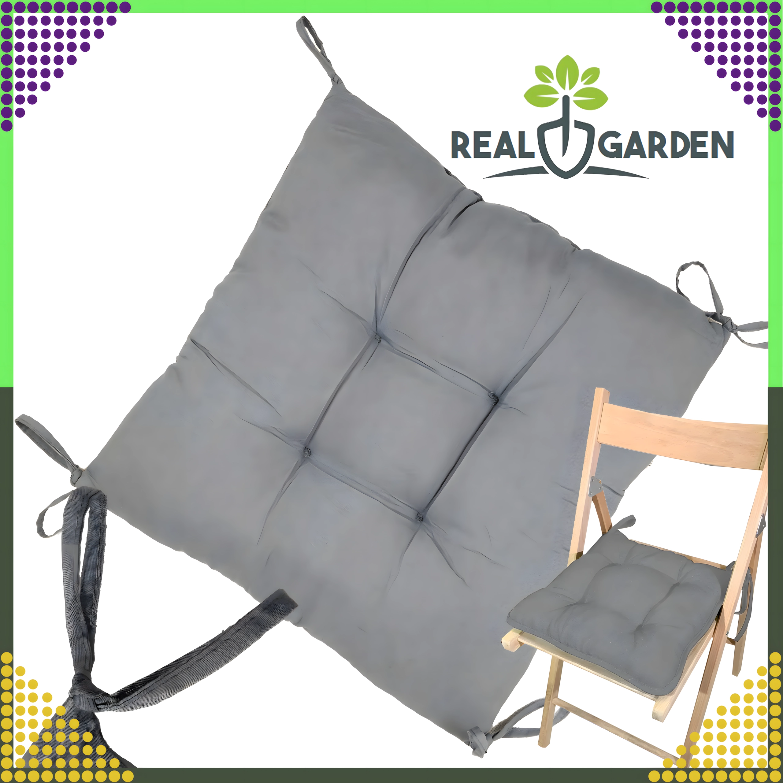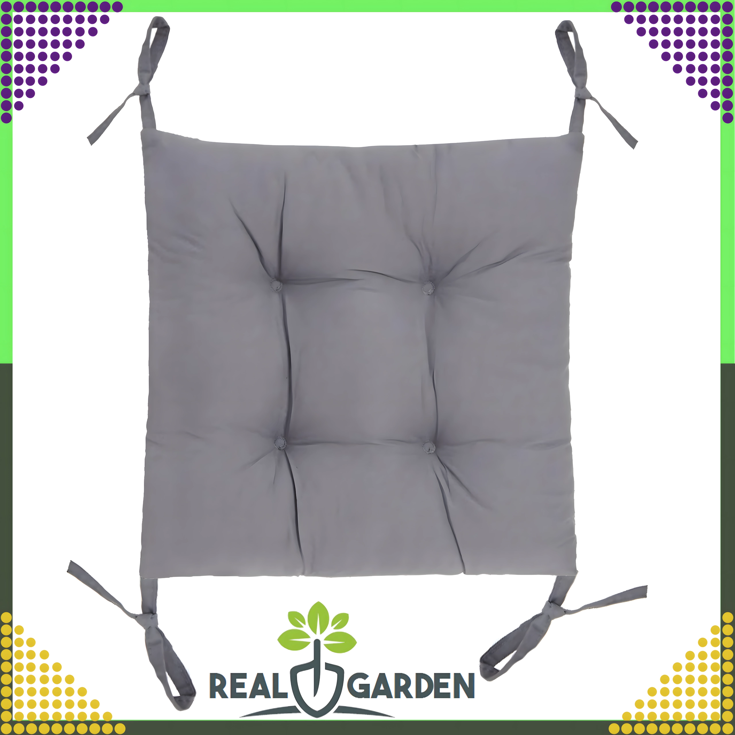Comfortabel en duurzaam stoelkussen met afmetingen 40 × 40 × 8 cm voor keuken, woonkamer en tuin. Dankzij de bindlinten blijft het op zijn plaats, de schuimvulling behoudt de vorm en de prettige gewatteerde stof zorgt voor comfortabel zitten.