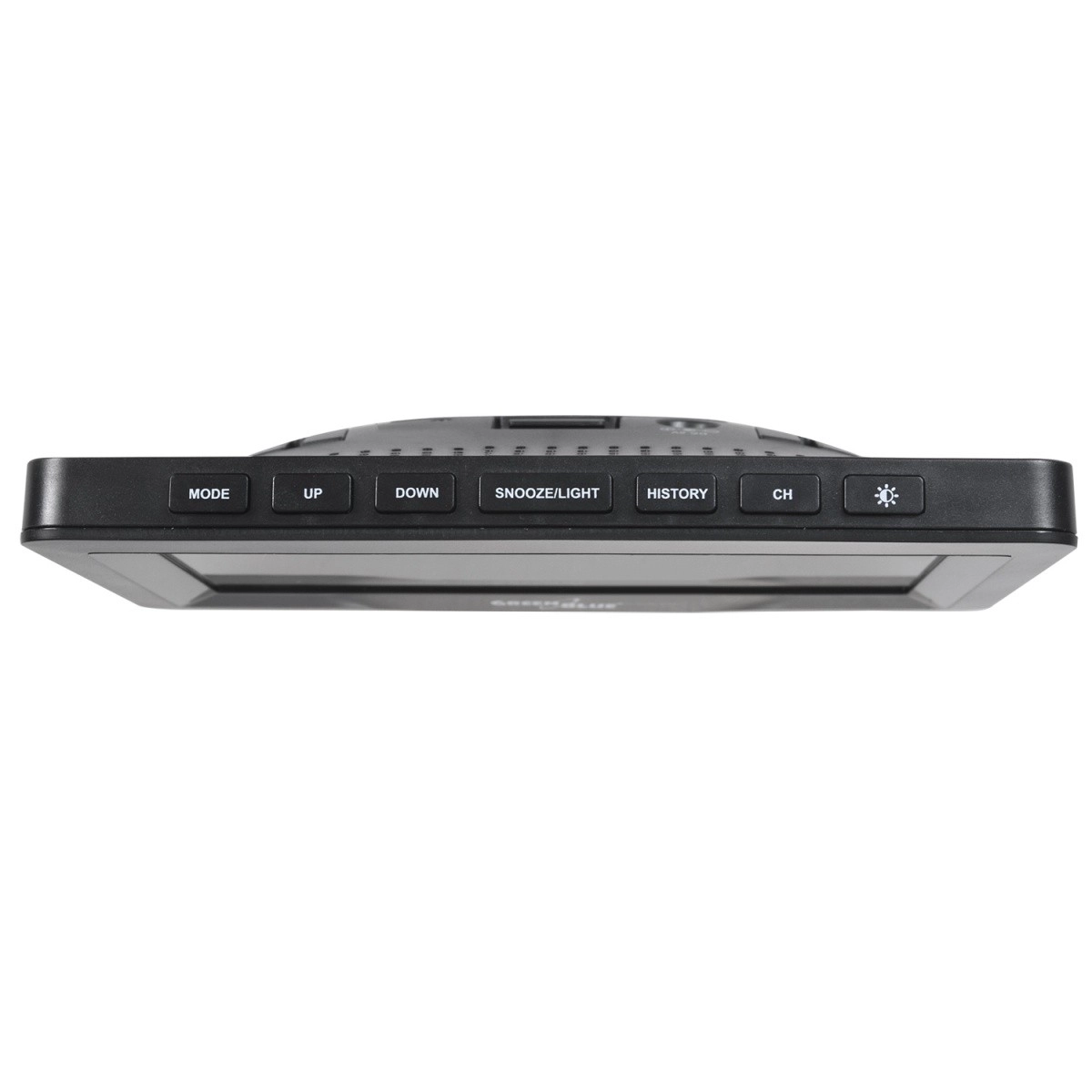 Knoppen voor modi, drukhistorie, kanaalkeuze, helderheidsinstelling en de snoozefunctie maken dagelijks gebruik eenvoudig.
