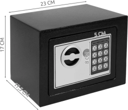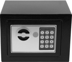Veilige en eenvoudig te bedienen kluis met elektronisch slot, ideaal voor het opbergen van contant geld, sieraden, documenten en andere kleinigheden. De programmeerbare code (3–8 cijfers) biedt snelle toegang, terwijl de mechanische reservesleutel dient voor noodopening. Na drie foutieve pogingen wordt een blokkering van 30 seconden geactiveerd met licht- en geluidsindicatie.