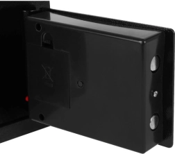 De robuuste stalen behuizing en stevige deur bieden betrouwbare bescherming in huis, op kantoor en in hotelkamers. De kluis kan vast worden gemonteerd met de meegeleverde pluggen en schroeven. De binnenruimte is geschikt voor documenten tot A5 en is voorzien van een viltinleg voor zorgvuldige opslag van kostbaarheden.