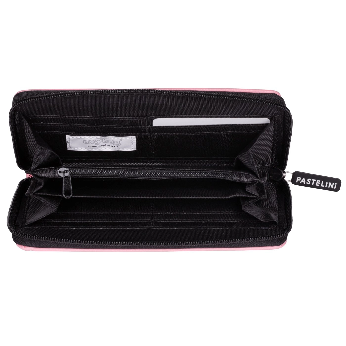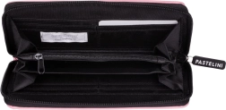 Stijlvolle roze portemonnee met rondomlopende rits en een minimalistisch PASTELINI-logo. Biedt veilige opbergruimte voor bankbiljetten en kaarten en ligt prettig in de hand.