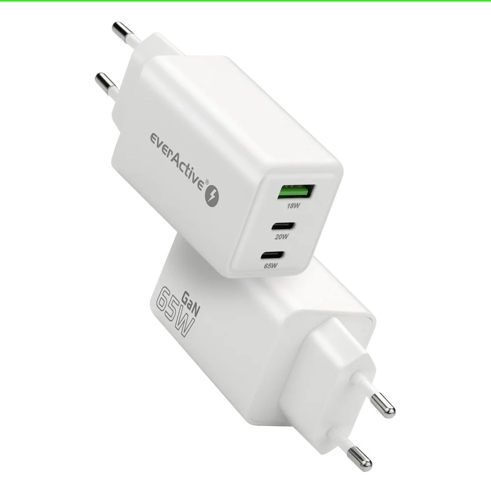 De everActive GaN 65W lader biedt modern en efficiënt opladen in een elegante witte afwerking. Dankzij de halfgeleidertechnologie GaN is hij kleiner, koeler en efficiënter dan gewone adapters, maar kan toch veeleisende apparaten aandrijven, waaronder ultrabooks en iPads.