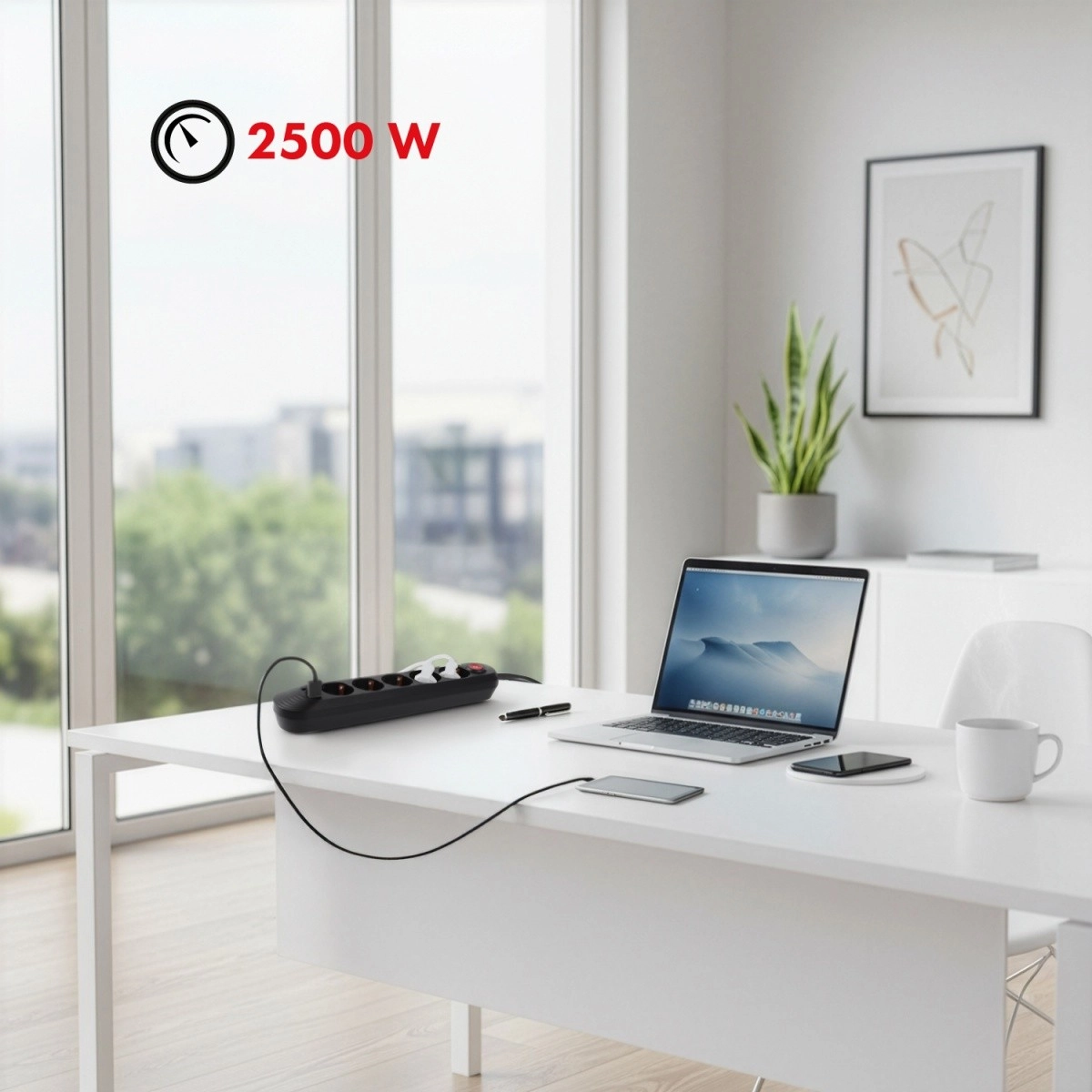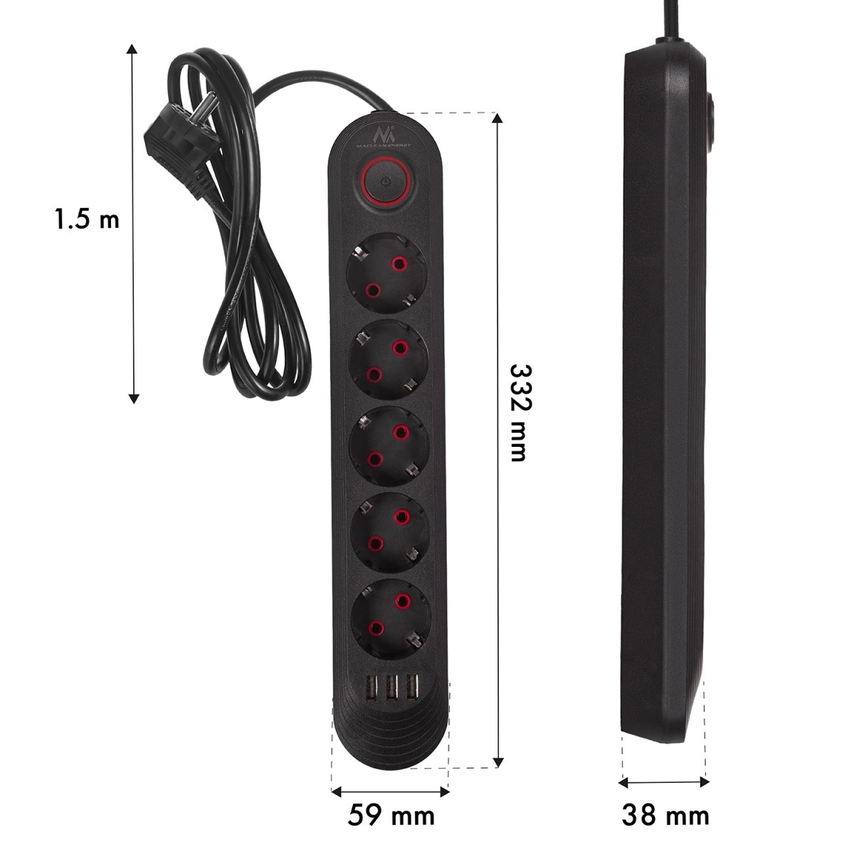 De geïntegreerde hoofdschakelaar maakt het eenvoudig om aangesloten apparaten volledig los te koppelen. Antislipafwerking en hoogwaardige materialen zorgen voor een lange levensduur en veilig gebruik.