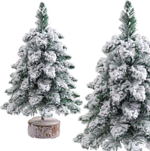 Een elegante decoratieve boom van 60 cm hoog brengt een winterse en knusse sfeer in het interieur. De dichte takjes met een rijke sneeuwbestrooiing ogen realistisch, terwijl de stabiele voet van natuurhout een rustieke charme toevoegt. Ideaal voor tafel, dressoir of receptie – compacte afmetingen en een tijdloze winterlook voor herhaald gebruik elk seizoen.