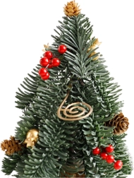De boom staat op een natuurlijke houten voet, waardoor hij stabiel is en direct klaar om neer te zetten. Realistische takjes met rode bessen en dennenappels zorgen voor een knusse, traditionele look die het winterse en feestelijke interieur benadrukt.