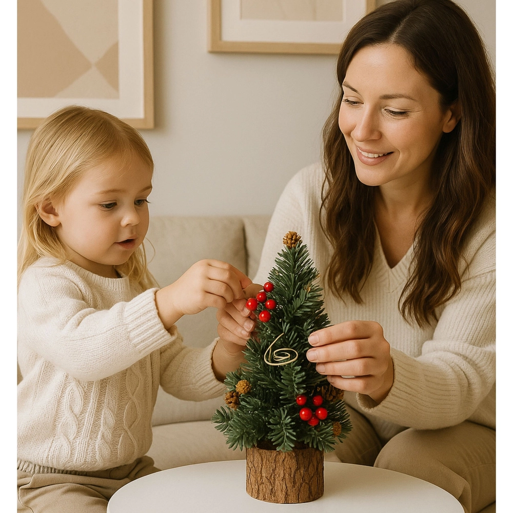 Het kleine tafeltje-boompje is ideaal voor planken, tafels of recepties en creëert direct een feestelijke sfeer.