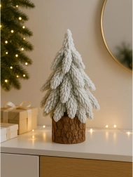 Breng winterse magie in je interieur met deze compacte boom van 20 cm hoog. De zachte, pluizige takjes met sneeuweffect en de natuurlijke houten basis creëren een knusse feestelijke sfeer in rustieke stijl. Ideaal voor op een tafel, plank, dressoir of bureau en voor kerstarrangementen thuis en op kantoor.