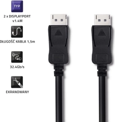 Hoogpresterende DisplayPort 1.4-kabel van 1,5 m die beeld en geluid in topkwaliteit overdraagt tot 8K, met een bandbreedte van 32,4 Gb/s, ondersteuning voor HDR10, HBR3 en DSC-technologie voor maximale scherpte en vloeiendheid. Ideaal voor gamen, professionele grafische toepassingen en multimediale entertainment op meerdere monitoren dankzij Multi-Stream-ondersteuning.