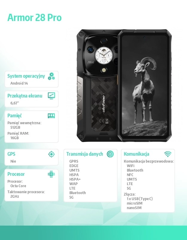 Ulefone Armor 28 Pro 5G robuuste smartphone 16 GB/512 GB