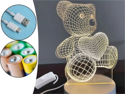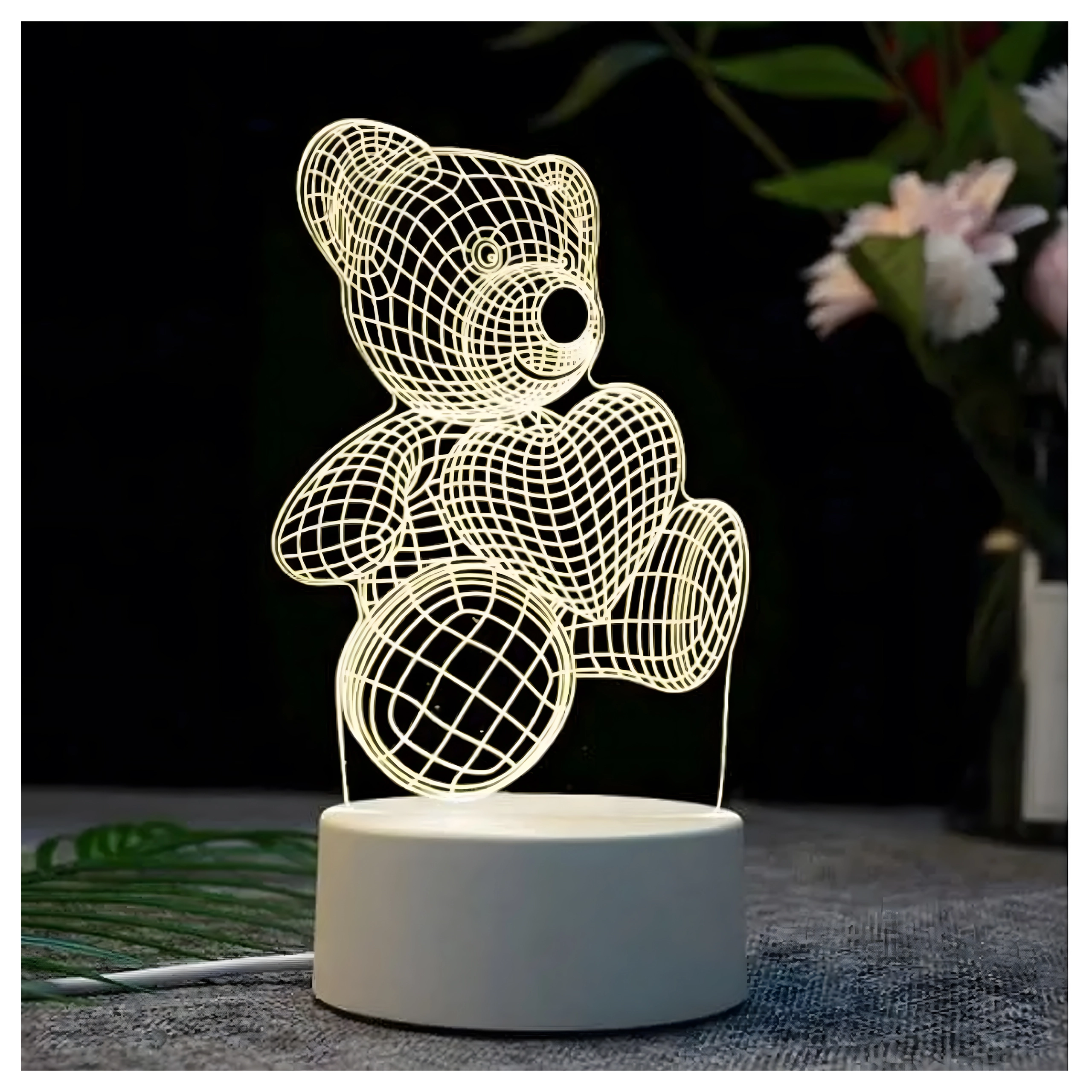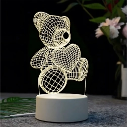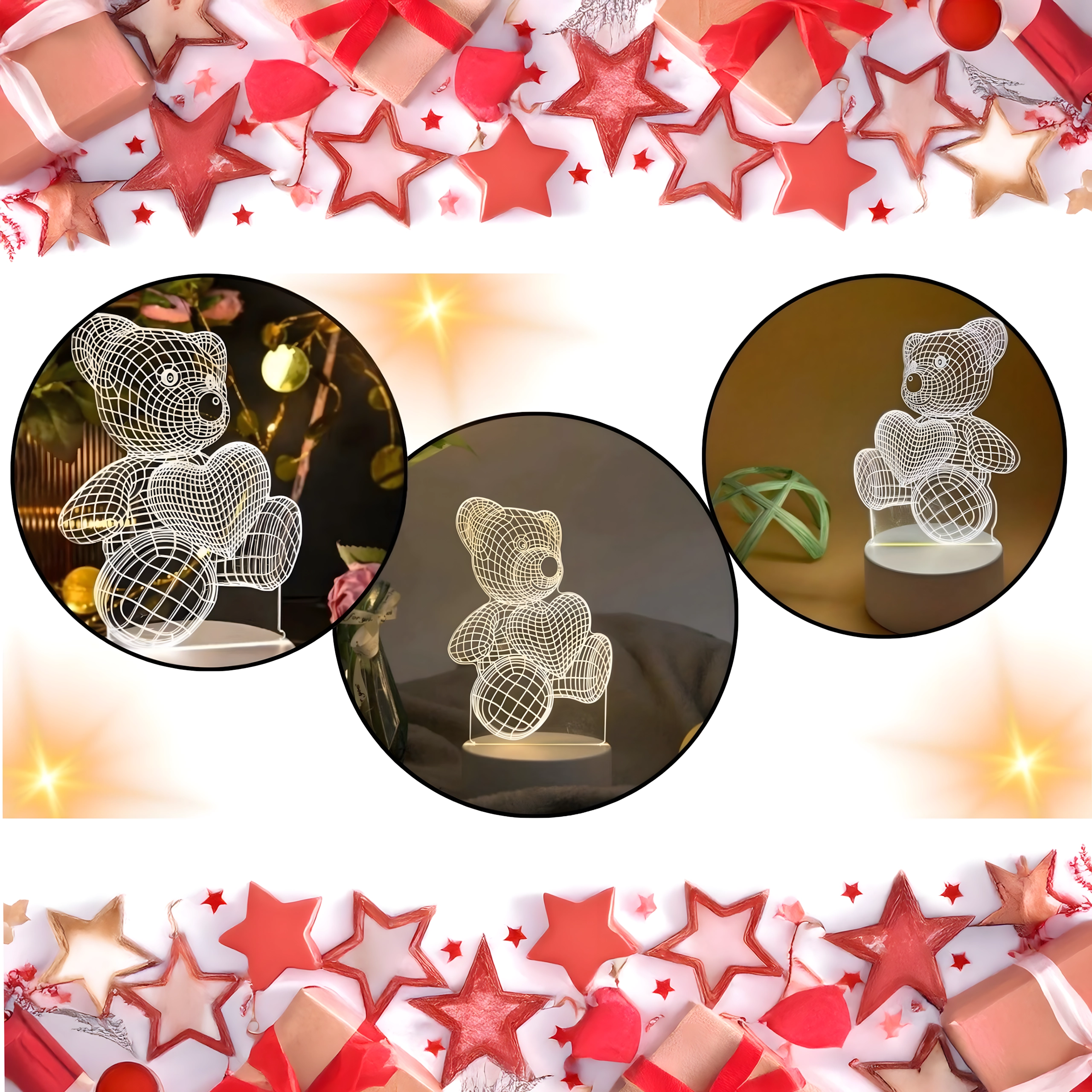 Deze decoratieve nachtlamp in de vorm van een teddybeer met een hart gebruikt helder acryl met gegraveerd raster, dat bij inschakeling een realistisch 3D-effect creëert. Dankzij het zachte, rustgevende licht is hij ideaal voor het in slaap vallen van kinderen, avondlezen of subtiele verlichting van planken en tafeltjes.