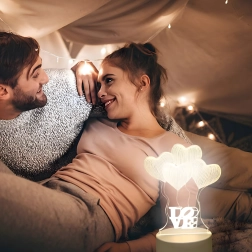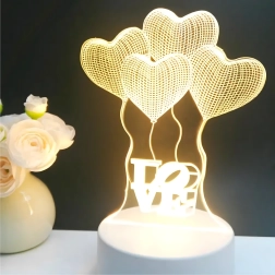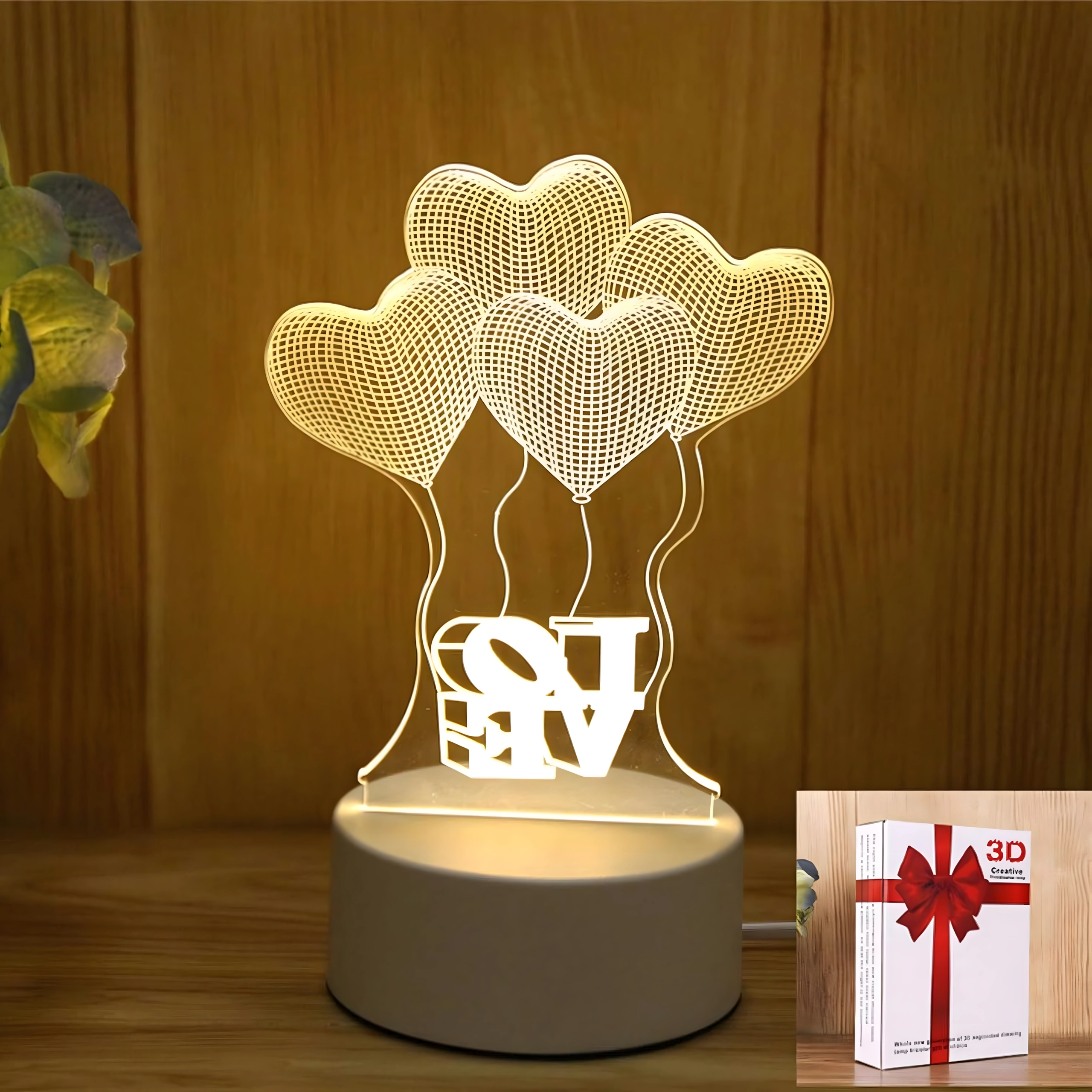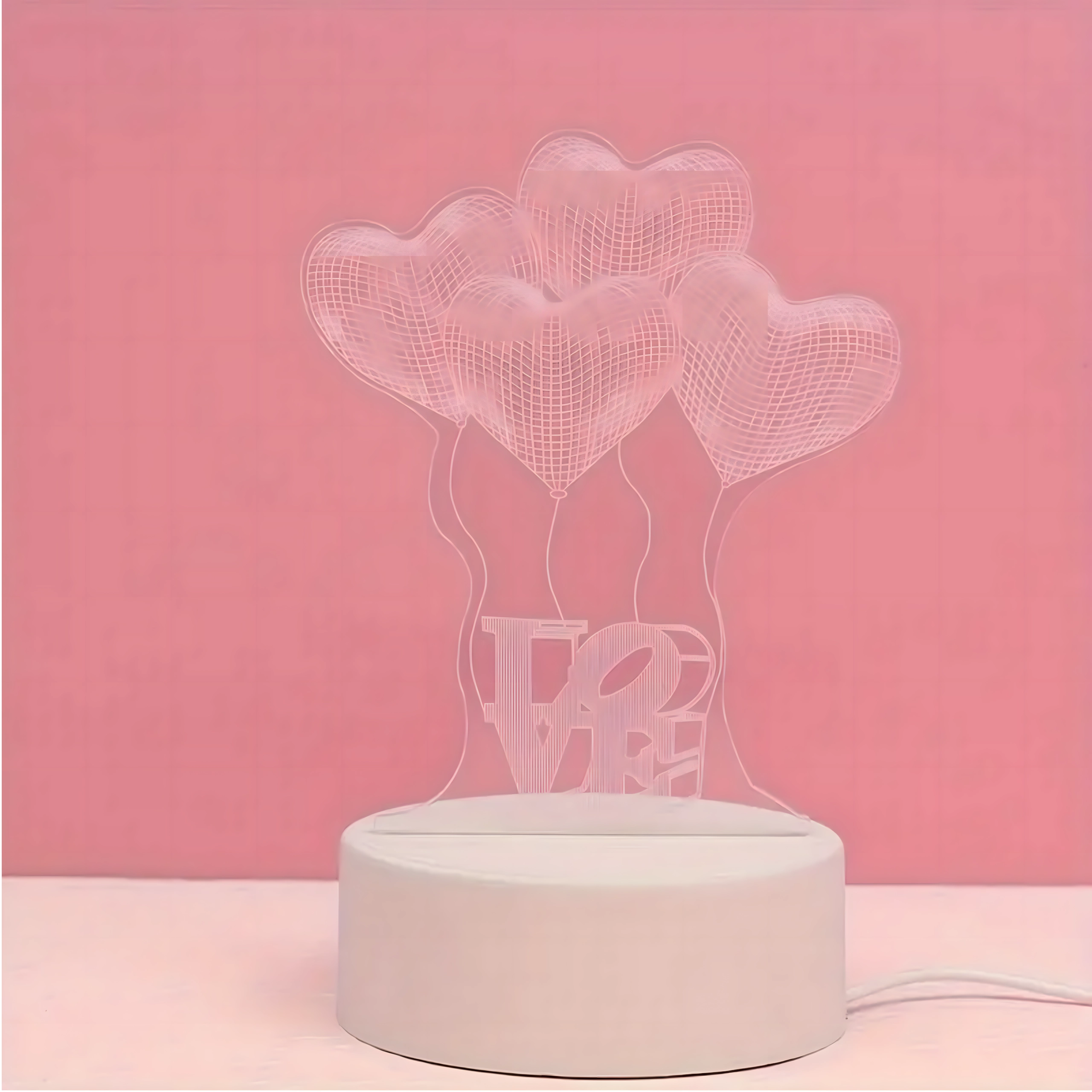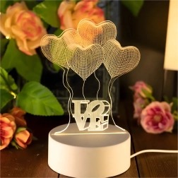 Romantische nacht-LED lamp met LOVE en hartjes die een indrukwekkende 3D-illusie creëert op een helder acryl paneel. Perfect als decoratief licht voor de slaapkamer, kinderkamer of als origineel cadeau. Eenvoudige voeding via USB, warm aangenaam licht en compact ontwerp voor dagelijks comfort.