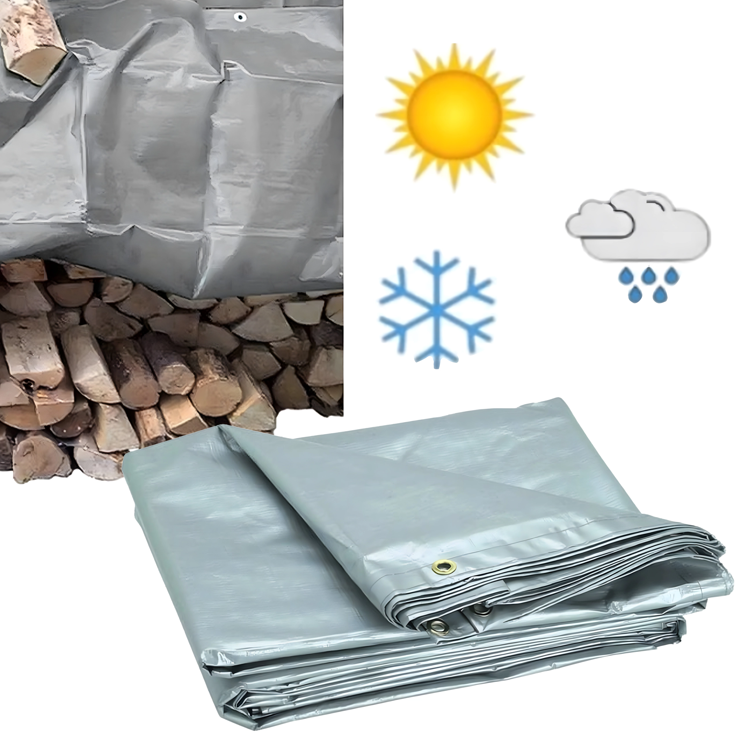 De universele zilveren uitvoering weerkaatst zonnestralen en vermindert de opwarming van afgedekte objecten. Het zeil is geschikt voor de bouw, tuin, kamperen en in huis – van het afdekken van hout en gereedschap tot tijdelijke overkapping of ladingbescherming.