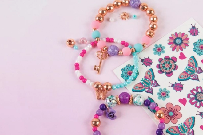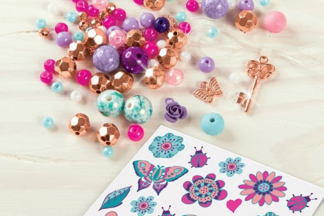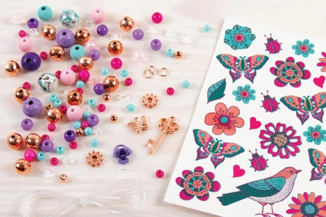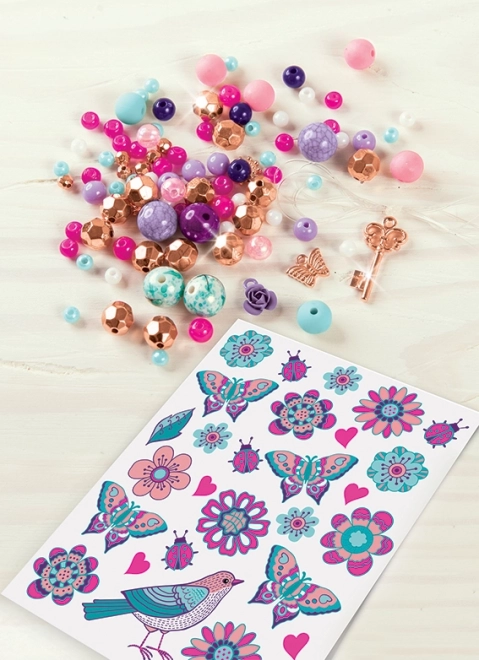 Ontwikkel je creativiteit en ontwerp je eigen bloemenarmbanden die je combineert met tijdelijke tatoeages. Dankzij de kleurrijke kralen, bedels en het eenvoudige rijgen maak je in een handomdraai sieraden waar elke kleine fashionista blij van wordt.