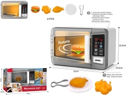 Deze kinder-magnetron biedt kinderen een authentieke kookbeleving. Na het indrukken van de START-knop gaat het licht aan, begint het plateau te draaien en hoor je geluidseffecten die het echte gebruik nabootsen.