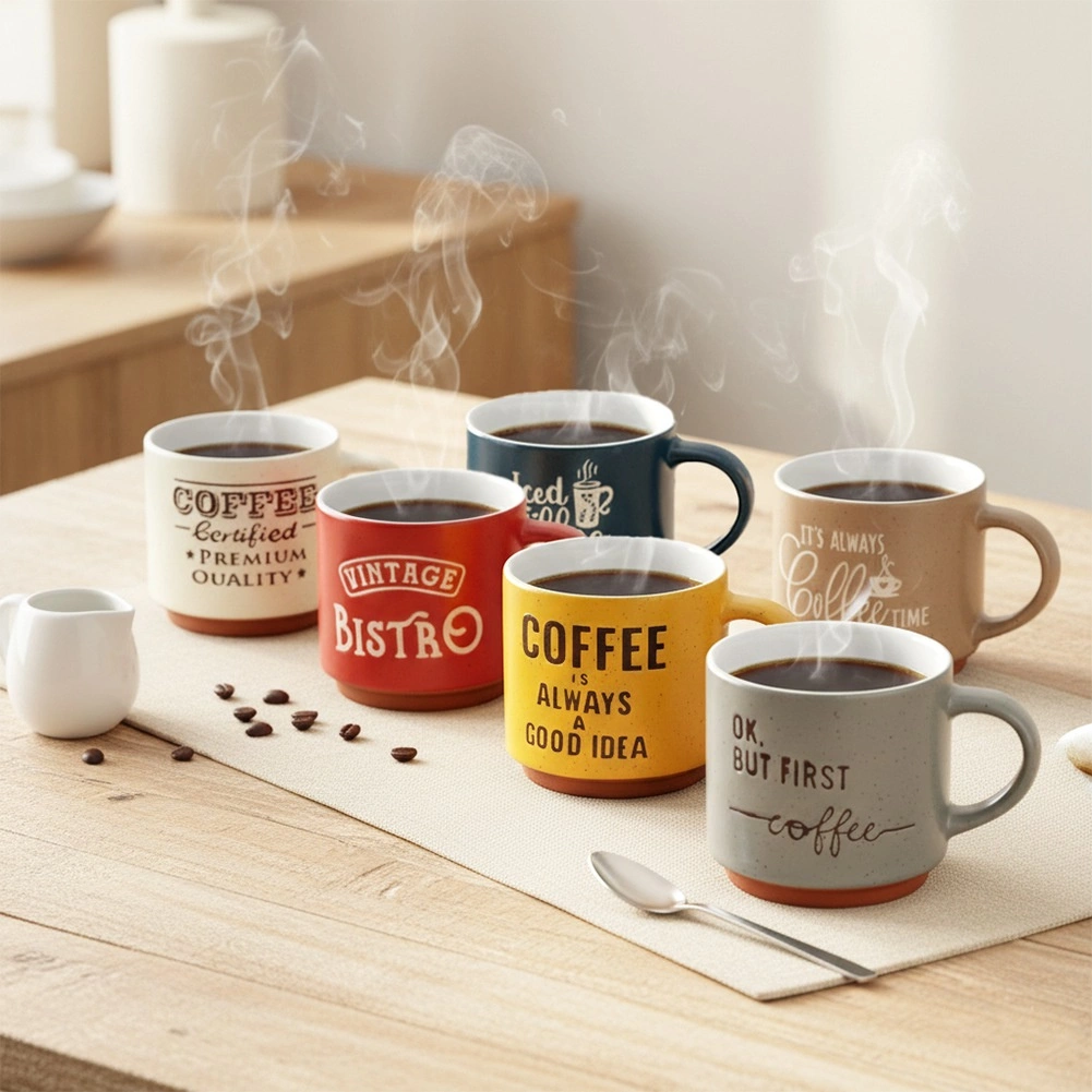 Elke mok heeft een andere kleur en koffiequote die je tafel opfleuren en de sfeer van je favoriete café oproepen.