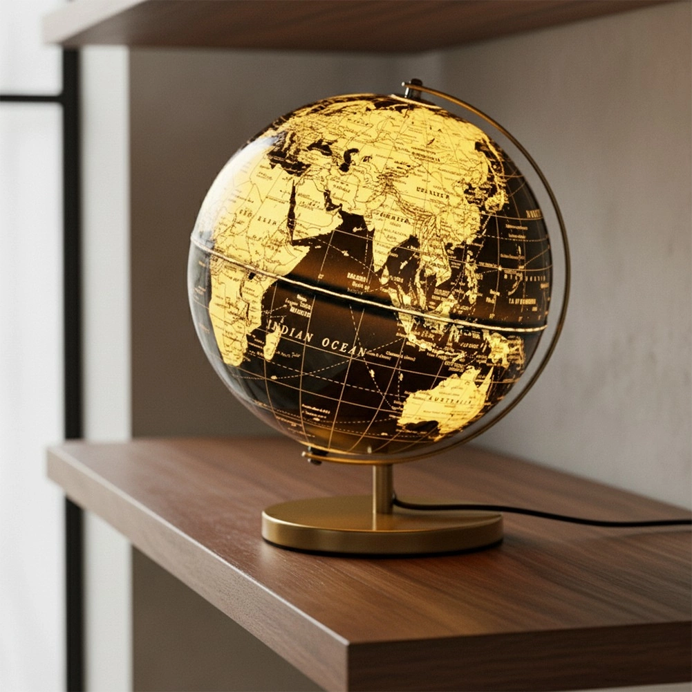 • Design: zwart-gouden globe als opvallende decoratie en subtiele lichtbron