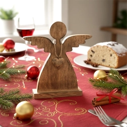 De engel als indrukwekkend middelpunt op een kerst- of winterse tafelschikking. Brengt warmte en sfeer.