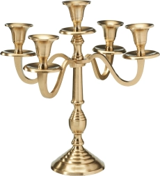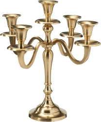 Deze vijfarmige kandelaar in edel goud is vervaardigd uit duurzaam aluminium en past met zijn afmetingen van 29,5 × 29,5 × 30 cm perfect op de eettafel, het dressoir of de schouw. Creëer eenvoudig een indrukwekkende lichtcompositie met vijf lange kaarsen.