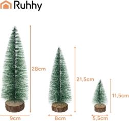Creëer thuis een feestelijke sfeer met de schattige set van drie mini-boompjes van RUHHY. Ze hebben realistisch besneeuwd naaldgroen, een stabiele houten stam en zijn perfect voor op tafel, dressoir en DIY-decoraties. De verschillende hoogtes maken effectvolle schikkingen mogelijk en de lichte, duurzame constructie garandeert een lange levensduur.