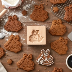 Deze houten mal met belletjes is ideaal voor thuis bakken en creatief knutselen. Dankzij de precieze gravure maakt hij schone en uitgesproken afdrukken met rijke details die op koekjes, peperkoek en banketdecoraties prachtig uitkomen.