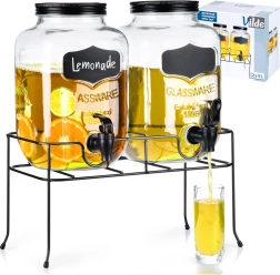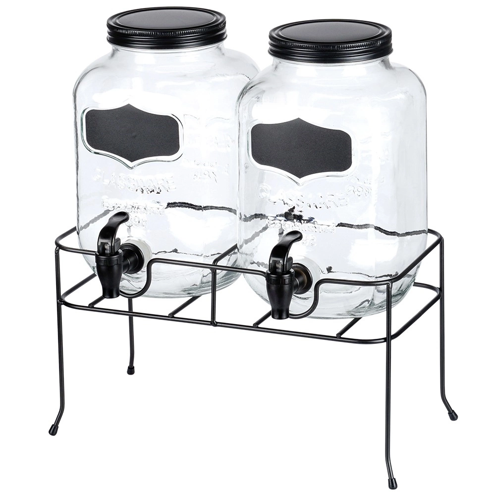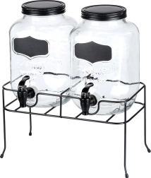 Het robuuste metalen rek in het zwart zorgt voor de ideale hoogte voor comfortabel tappen en heeft gerubberde pootjes tegen verschuiven en krassen op het werkblad. De set is perfect voor limonades, sappen, ijsthee, gearomatiseerd water of punch bij familiefeesten, barbecues en in de horeca, waar u elegant twee verschillende dranken kunt presenteren.