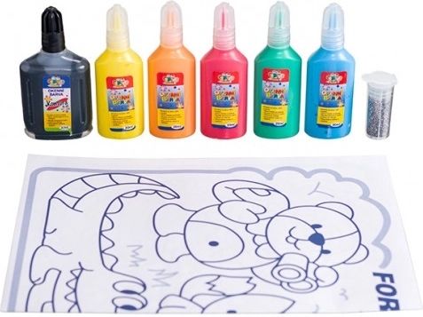 De set afpelbare raamverf is ideaal voor kinderen die graag knutselen. Kies een sjabloon, trek deze over met zwarte contourverf, kleur in met je favoriete tinten en versier met glitter. Na het drogen (ca. 6 uur) kan het motief worden afgepeld en opgeplakt op een raam, glas of kunststof.