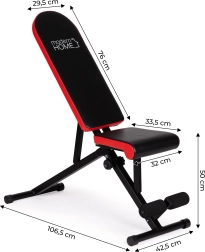 Deze multifunctionele MODERN HOME bank breidt je thuisgym uit met een betrouwbare steun voor drukoefeningen, rows en buikspiertraining. Dankzij de brede verstelmogelijkheden van de rugleuning en de verstelbare zitting pas je de hoek eenvoudig aan voor vlakke en schuine oefeningen. Het zachte polster van duurzaam ecoleer en het stevige stalen frame zorgen voor stabiliteit en comfort.