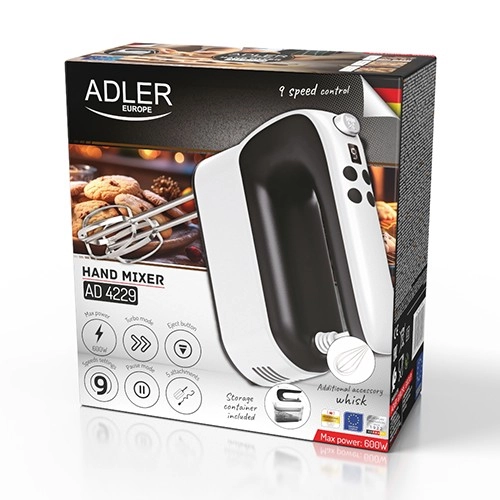 Op zoek naar een veelzijdige hulp in de keuken? De handmixer met LCD ADLER AD 4229 kan mixen, kloppen en deeg kneden met maximale controle. Dankzij 9 snelheidsniveaus en de Turbo-stand pas je het vermogen eenvoudig aan elk recept aan – van luchtige slagroom tot stevig gerezen deeg.