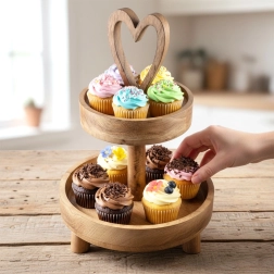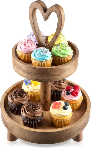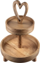 De volledige constructie is van massief mangohout, dat van nature vochtbestendig is, niet vervormt, geen geuren absorbeert en snel droogt. Het praktische hartvormige handvat vergemakkelijkt het serveren en de inklapbare constructie bespaart ruimte bij opslag en vervoer. Perfect voor thuis, catering en sweet tables.