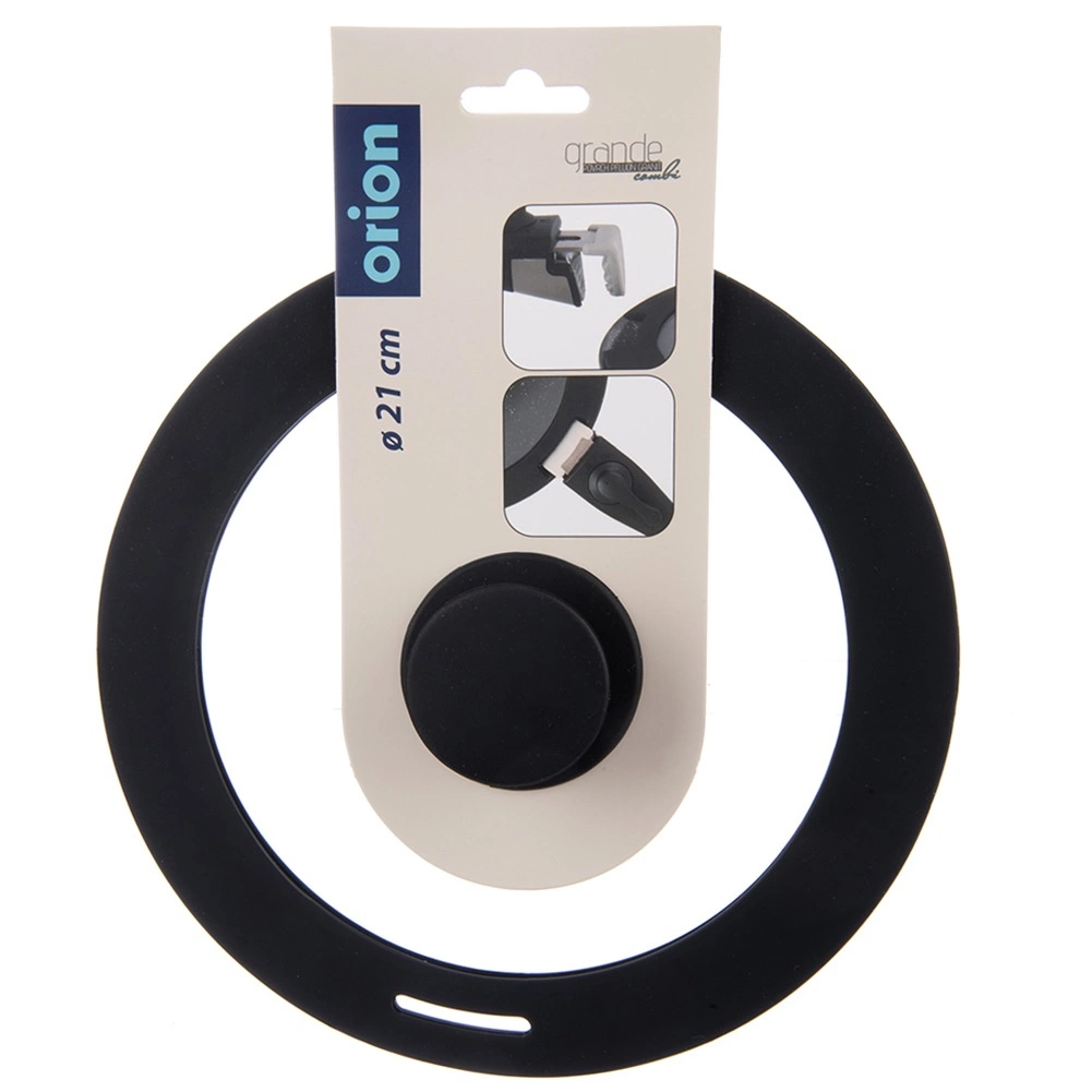 Het borosilicaatglazen deksel met brede siliconen rand past perfect op potten en pannen met een diameter van 20 cm. Transparant glas maakt constante controle van het gerecht mogelijk, terwijl siliconen zorgen voor een stabiele en dichte pasvorm zonder rammelen en stoomverlies.