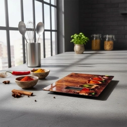Gehard glas is duurzaam en gemakkelijk te reinigen. Het slanke ontwerp bespaart ruimte en het elegante kruidenmotief geeft elke keuken een frisse look.
